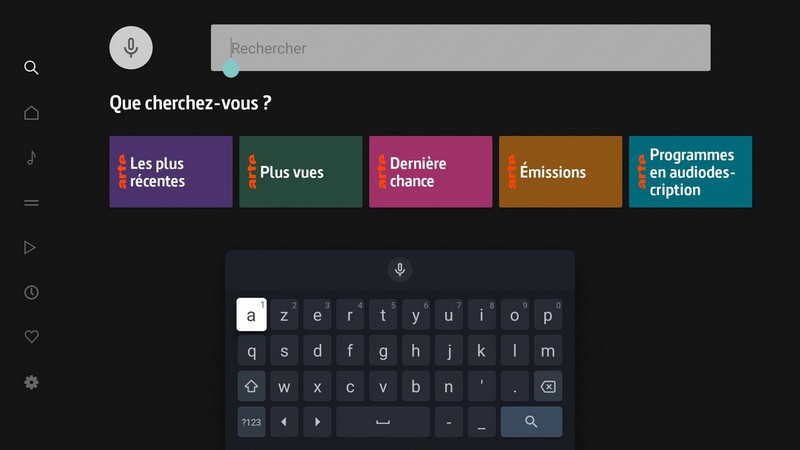 Dans cette barre de navigation, il y a tout d’abord, le moteur de recherche laissant le choix entre la saisie au clavier virtuel ou la requête vocale.