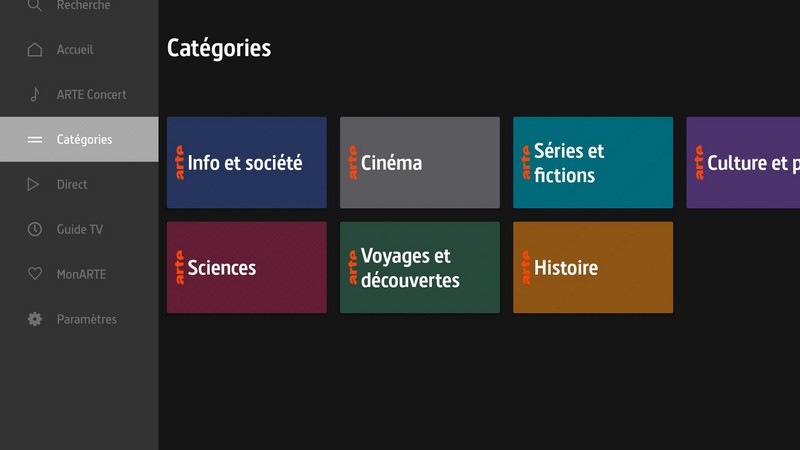 Une section Catégorie permet de découvrir des contenus à travers sept catégories nommées “Infos et société”, “Cinéma”, “Séries et fictions”, “Culture et pop”, “Sciences”, “Voyages et découvertes” et “Histoire”. De quoi varier un peu les thématiques.