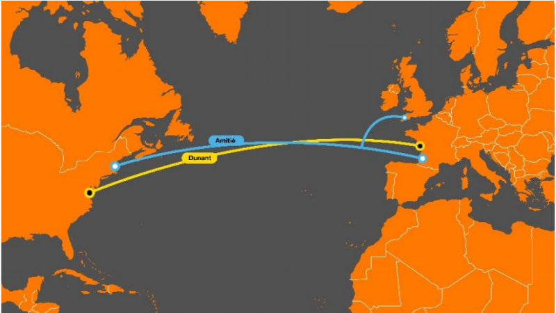 L’océan Atlantique est un des axes principaux le plus emprunté concernant la connectivité, avec 80 % du trafic Internet généré en France en provenance des Etats-Unis. Début de l’année 2020, Orange annonçait la mise en place du câble “Dunant” appartenant à Google. Doté de 12 paires de fibre, ce câble offre une capacité de connexion allant jusqu’à 30 Tbit/s chacune. Soit une capacité trois fois supérieur a l’ancienne génération de câble sous-marin.