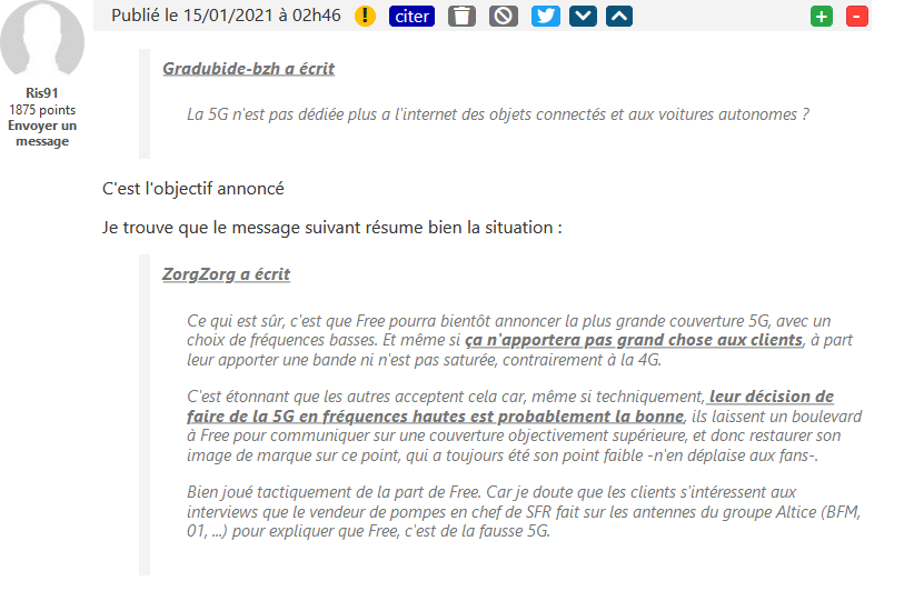 Nouvelle génération de téléphonie mobile, forcément, les questions se bousculent. Notamment pour l’utilité de la 5G sur smartphone, plutôt que pour objets connectés où l’usage paraît plus pertinent pour certains. En tout cas du point de vue des opérateurs, d’après Ris91, Free bénéficie d’un réel boulevard avec l’utilisation de la 700 MHz et ses sites 5G bien plus nombreux que ceux de la concurrence d’après l’Arcep. Pour lui, c’est un beau coup marketing, qu’en pensez-vous ?