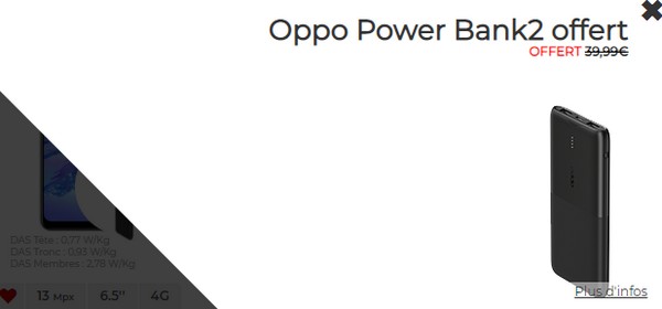 Pour l’achat de ce smartphone, on profite également de la Power Bank2 en cadeau, une batterie externe 10 000 Watts avec charge 18 Watts d’une valeur de 39,99 euros.
