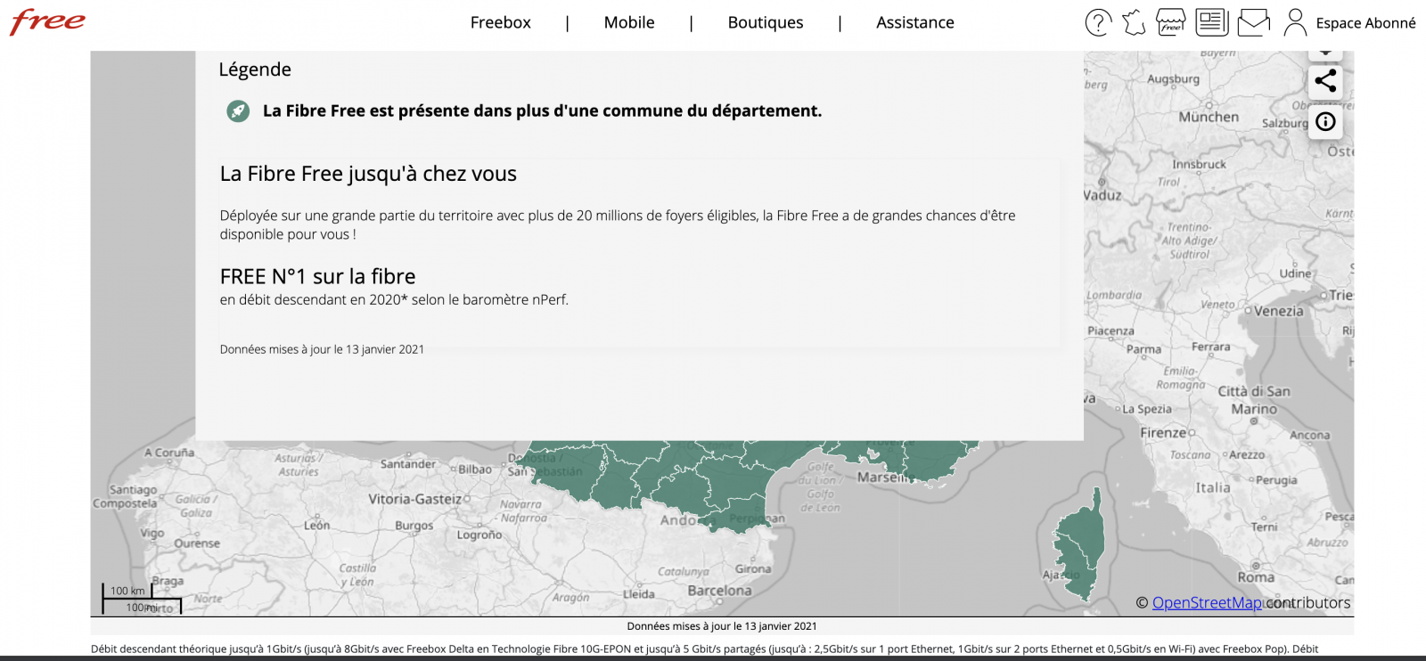 A l’heure où le déploiement de la fibre est à plein régime partout en France, l’appétit des foyers grimpe en parallèle. Pendant la crise sanitaire, les usages numériques s’accélèrent avec le télétravail ou encore l’e-commerce. Chez Free, de nombreux abonnés ADSL attendent la fibre optique de pied ferme. Pour les informer de l’avancée de leur raccordement, Free a lancé pour vous en mars dernier une carte interactive. Celle-ci a reçu hier une nouvelle mise à jour, présentant désormais des données actualisées au 13 janvier 2021. La fibre vous tend désormais peut-être les mains.
