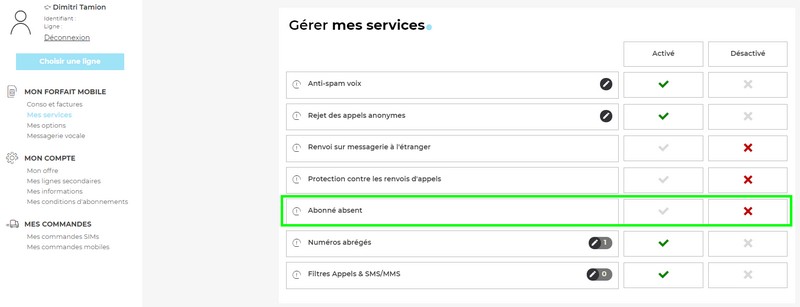 Une fois connecté à l’Espace Abonné, allez dans la rubrique “Mon forfait mobile”, puis la sous-rubrique “Mes services”. Il ne reste qu’à activer l’option “Abonné absent”.