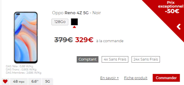 De la 5G, un écran 120 Hz pour plus de fluidité dans les jeux, une batterie 4000 de mAh pour passer la journée sans encombre, Android 10, une caméra principale de 48 Mpx, de nombreux capteurs pour plus de polyvalence et une compatibilité 700 MHz, le Oppo Reno 4Z 5G 128 Go affiche une nouvelle promo dans la boutique en ligne de Free Mobile. Un smartphone milieu de gamme accessible pour quelques temps avec une réduction de 50€, soit 329 au lieu de 379€, en achat comptant. Cette promo s’applique également au paiement en 4 fois sans frais, soit 83€ à la commande puis 3 fois 82€, ou encore en 24 fois sans frais, à savoir 137€ à la commande puis 24 fois 8€ .