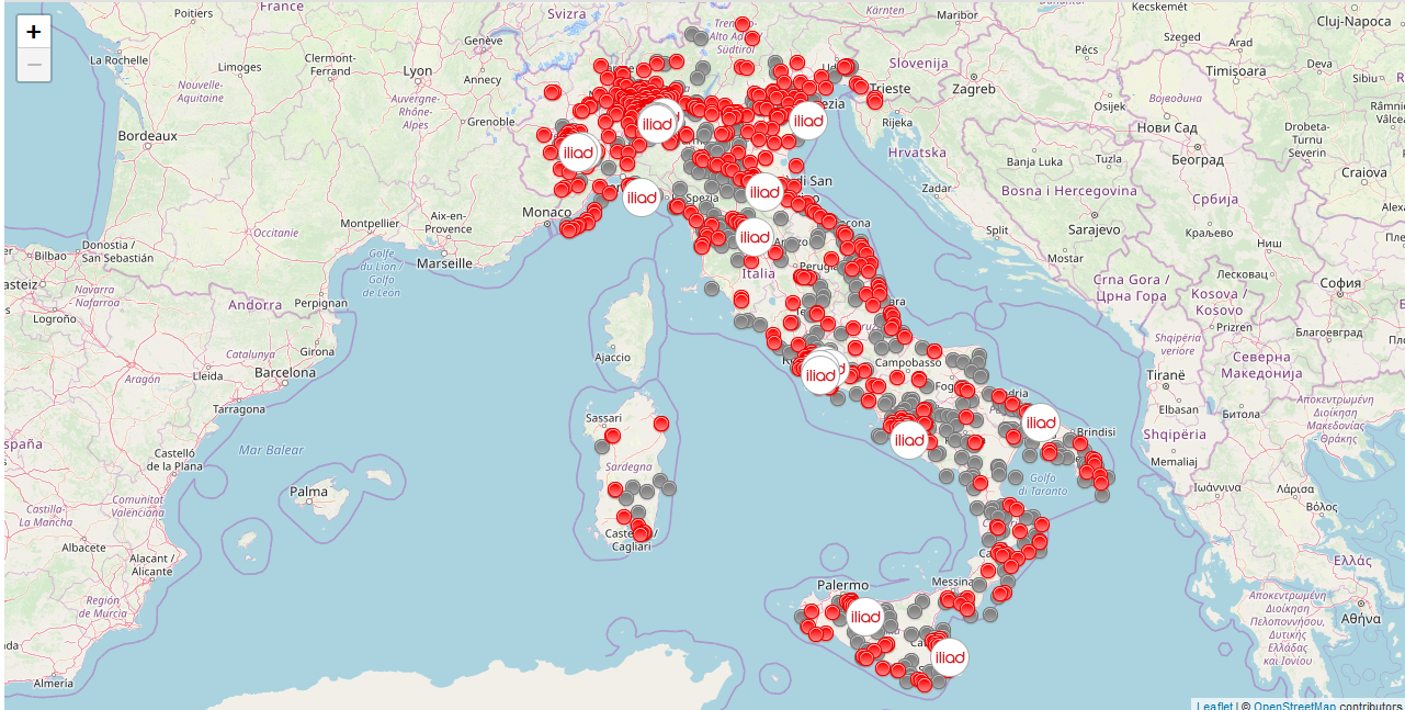 La distribution des forfaits d’Iliad se faisait auparavant via le site web, bien sûr, mais également via plus de 1300 bornes interactives ou en se rendant dans l’un des 18 magasins Iliad. Sans oublier les plus de 500 Iliad Corners et le réseau Iliad point chez les buralistes, les marchands de journaux et les bars. Les italiens peuvent retrouver le point de vente Iliad le plus proche grâce à une carte interactive.