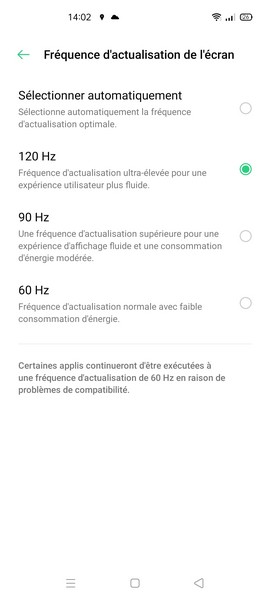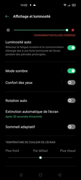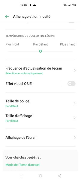 Bonne diagonale, définition Full HD+ et taux de rafraîchissement allant jusqu’à 120 Hz, l’Oppo Reno4 Z profite d’un écran sympa sur le papier. Il fait en revanche l’impasse sur la technologie AMOLED avec ses couleurs plus vives et ses noirs plus profonds. Dans les paramètres, il est possible de régler la température d’affichage (par défaut, plus froid ou plus chaud) et la fréquence de rafraîchissement de l’écran (120, 90 ou 60 Hz).