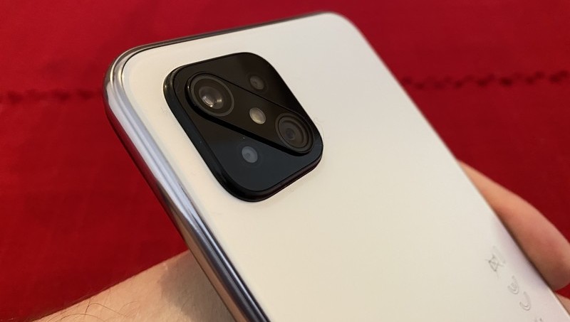 En main, la douceur des matériaux et le poids raisonnable offrent une belle sensation. Pour revenir au bloc photo arrière, sa faible épaisseur ne gêne pas trop sous le doigt. Son positionnement excentré rend toutefois instable le smartphone posé sur la table. Un aspect fort heureusement atténué par la coque de protection fournie.