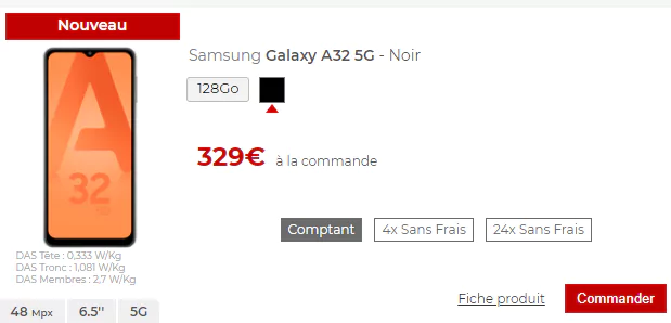 Un nouveau smartphone vient d’être ajouté dans la boutique en ligne de Free Mobile. Il s’agit du tout nouveau Samsung Galaxy A32. Il a ceci de particulier que c’est le moins cher des Galaxy 5G. Il est proposé chez Free au tarif de 329€ en paiement comptant. Il est également possible de le payer plusieurs fois sans frais : en 4 fois : 83€ puis 82€ durant ou en 24 fois : 137€ puis 8€ durant 24 mois.
