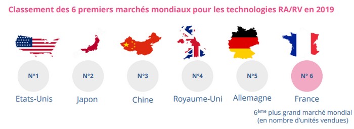 D’autres chiffres ressortent du rapport comme le fait que 88 % des Français utilisent Internet et que 78 % en font un usage quotidien. Il y a également le fait que 82 % des téléviseurs en France sont connectés à Internet, 46 % des internautes français ont déjà utilisé un assistant vocal et 77 % des 11 ans et plus disposent d’un smartphone. La France apparaît en outre comme le 6e marché mondial en 2019 pour la réalité augmentée / réalité virtuelle, après les USA, le Japon, la Chine, le Royaume-Uni et l’Allemagne avec 330 000 casques de RA/RV écoulés (contre 200 000 en 2018).