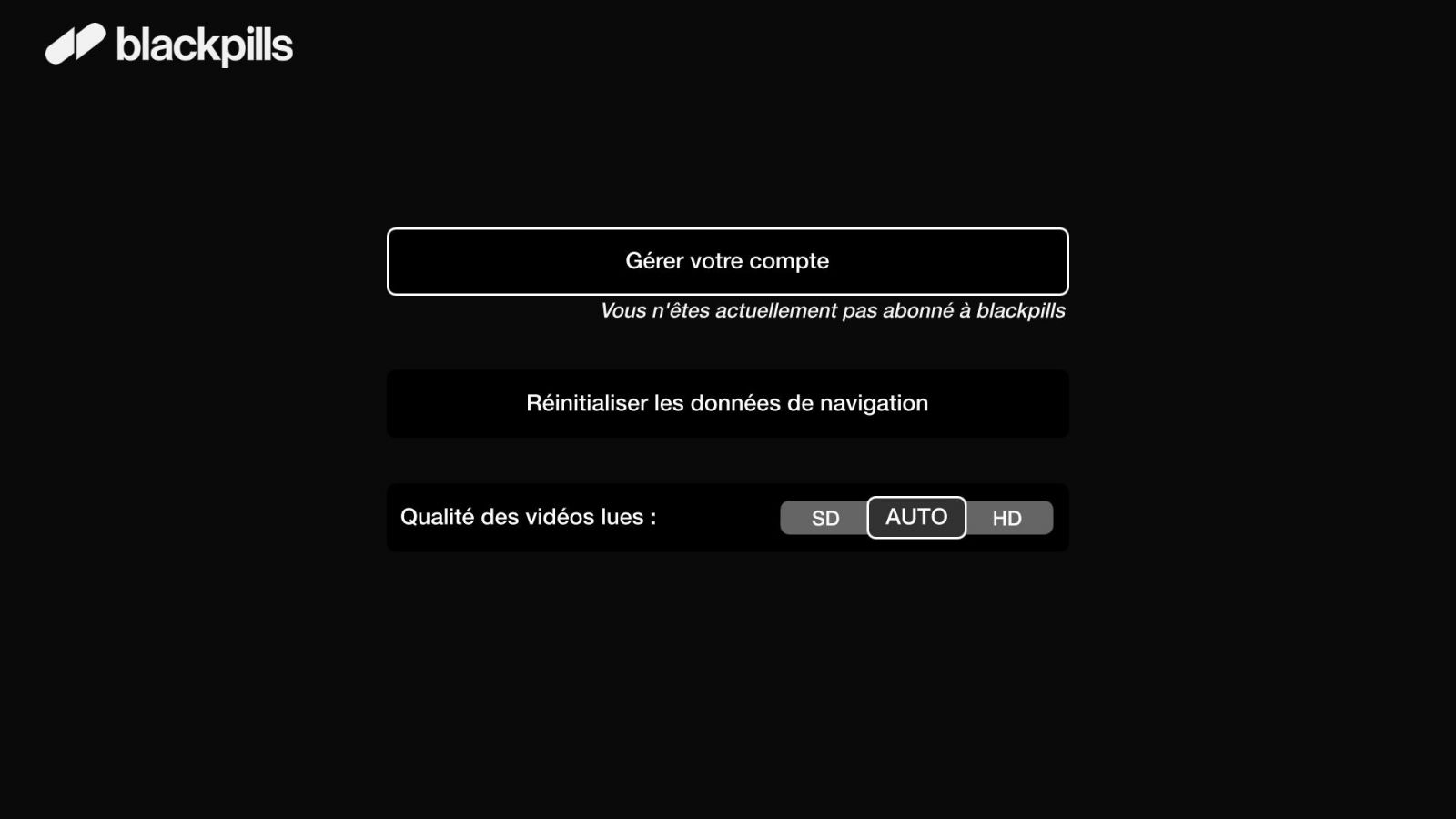 Et question paramètres, deux options sont proposées. Vous pouvez notamment forcer la HD ou la SD, ou laisser la résolution automatique gérer la qualité de votre image selon votre débit. Autre possibilité permise par l’écran de paramètres, celle de réinitialiser vos données de navigation en un clic. A noter : si s’abonner est très simple, se désabonner l’est tout autant. En effet, en cliquant à nouveau sur “Gérer votre compte”, vous pouvez directement résilier votre abonnement au service.