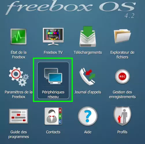 Avec l’interface Freebox OS, il suffit, après s’être connecté, de cliquer sur l’icône “Périphériques réseau”.