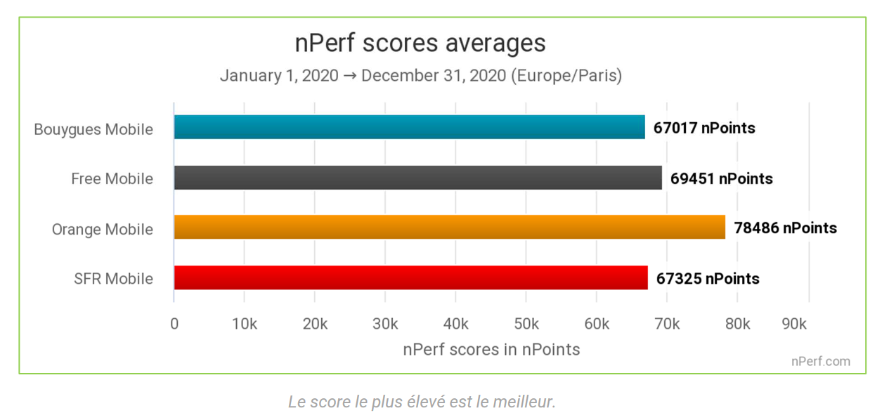 Baromètre mobile nPerf 2020 : Orange conserve la première place, égalité “presque parfaite” entre Free, Bouygues et SFR