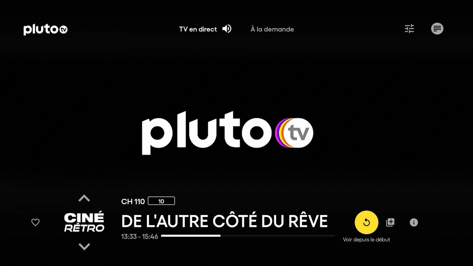 Petite chose à noter : vous ne pourrez pas rester indéfiniment sur la page d’accueil. Si l’application ne détecte aucune action de votre part, le programme sur lequel vous êtes resté se lancera automatiquement. Et si vous quittez brusquement Pluto TV, en la relançant vous reviendrez sur la même chaîne qu’à votre départ. A noter cependant : pas d’onglet de recherche dans la catégorie live, dommage.