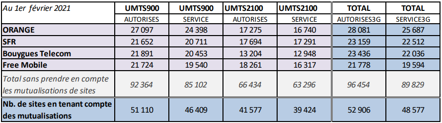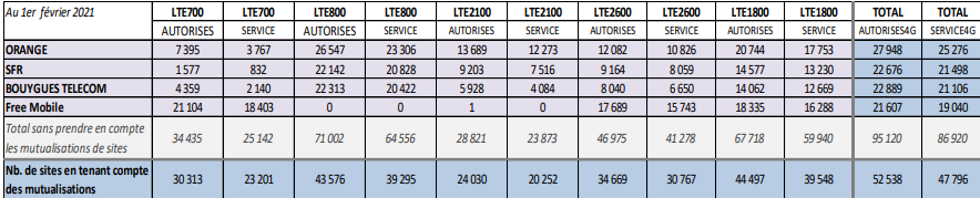 L’ANFR a publié les chiffres de déploiement des réseaux mobiles 4G/3G au 1 février 2021.