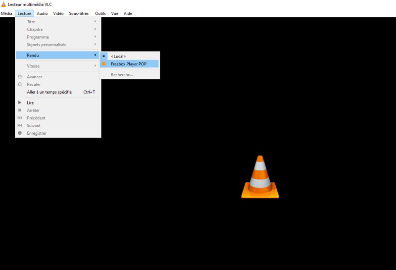 Mais cela fonctionne également sur ordinateur. Il suffit de passer par le menu “Lecture/Rendu” et de sélectionner le player Freebox.