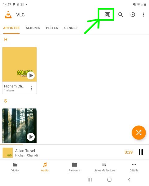 En ayant l’application VLC installée sur un smartphone ou une tablette tactile, il est possible de caster une musique, une vidéo ou une image vers le player afin de l’afficher sur le téléviseur. Il suffit de cliquer sur l’icône prévue à cet effet.