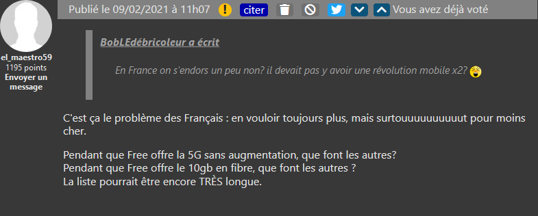 D’autres préfèreraient que Free se focalise sur le marché français. Ce qui a le don d’agacer des Freenautes comme el_maestro59.