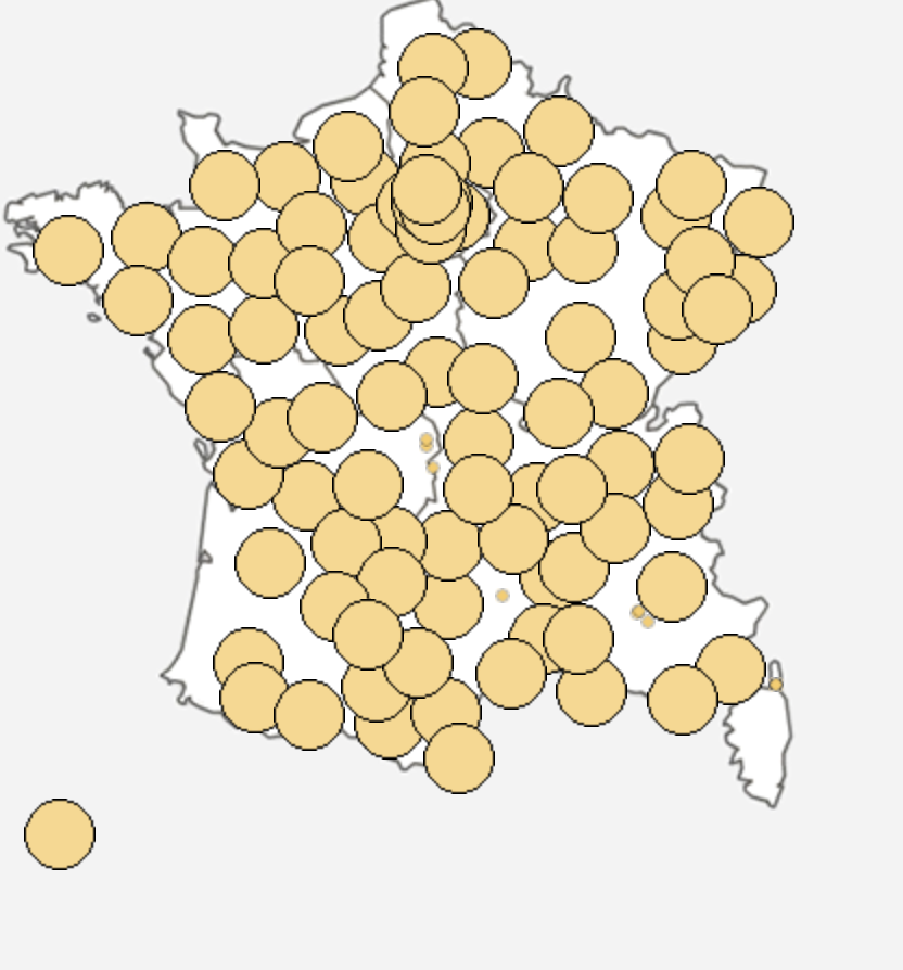 Sont notamment impactés les départements des Bouches-du-Rhône, Finistère, Gironde, Loire-atlantique, Loiret, Oise, Paris, Alpes-Maritimes, Gard, Isère, Hérault, Morbihan, Nord, Rhône, Saône-et-loire, Seine-Saint-Denis, Hauts-de-seine, Val-de-marne.