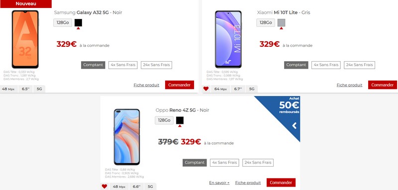 Aujourd’hui, nous opposons les Samsung Galaxy A32 5G, Xiaomi Mi 10T Lite et Oppo Reno4 Z, tous les trois compatibles avec la 5G et vendus à 329 euros. Notez d’ailleurs qu’ils sont disponibles en plusieurs fois sans frais.