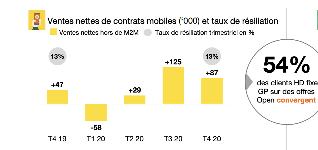 Et d’ajouter : “sur l’année 2020, l’EBITDAaL croît malgré les effets négatifs induits par la crise et le contre effet des offres de lecture numérique. Cette évolution démontre que nous tirons profit de nos investissements dans la fibre, que ce soit dans nos activités auprès des clients de détail ou des opérateurs. Notre profitabilité s’améliore également grâce au succès de nos offres convergentes et à notre approche « more for more » qui vise à rationaliser le marché.”