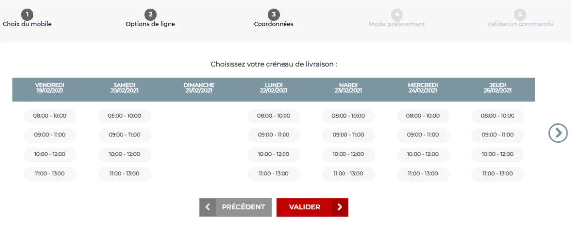 Et il y a une nouveauté plutôt pratique qui est proposée lors du parcours d’abonnement. En effet, il est désormais possible de choisir le jour et l’heure de la livraison pour le smartphone offert. Des créneaux de 2 heures sont ainsi proposés du lundi au samedi. Cela permet donc de réceptionner son colis quand on est certain d’être à son domicile.