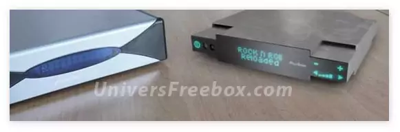 Vous l’aurez sans doute remarqué, il est marqué en petit "Freebox" ainsi que "Rock’n’Roll Reloaded" sur l’écran ! L’interface de cet éventuel prototype semble entièrement tactile. Une touche "Power" est présente sur le coté, ainsi que deux touches + et – pour le volume.