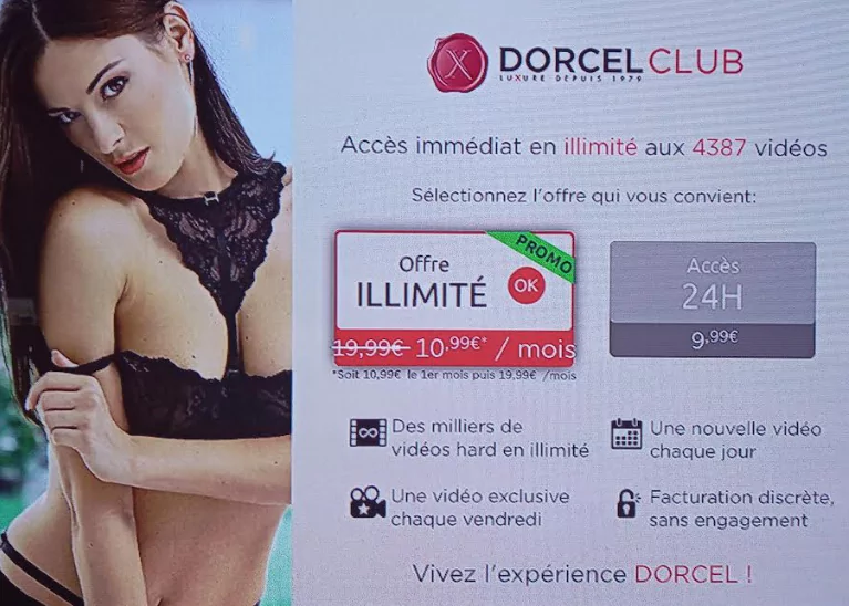 L’Aktu Free annonce que l’offre “Dorcel Club”, disponible dans le Vidéo Club de la Freebox, est actuellement en promotion, à -45%