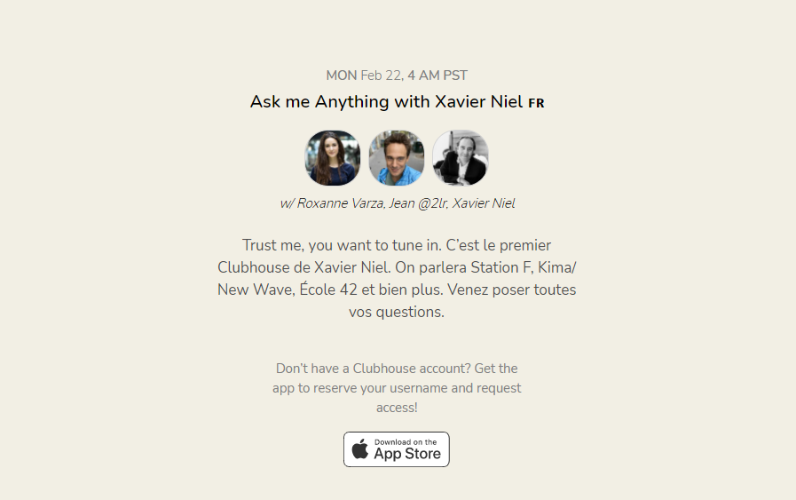 First @joinClubhouse with @Xavier75 on Monday at 1pm CET, join me and @2lr 🙋 https://t.co/OuGe1vKjce
