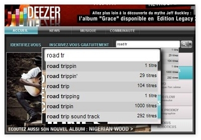 Recherche prédictive sur Deezer.com :