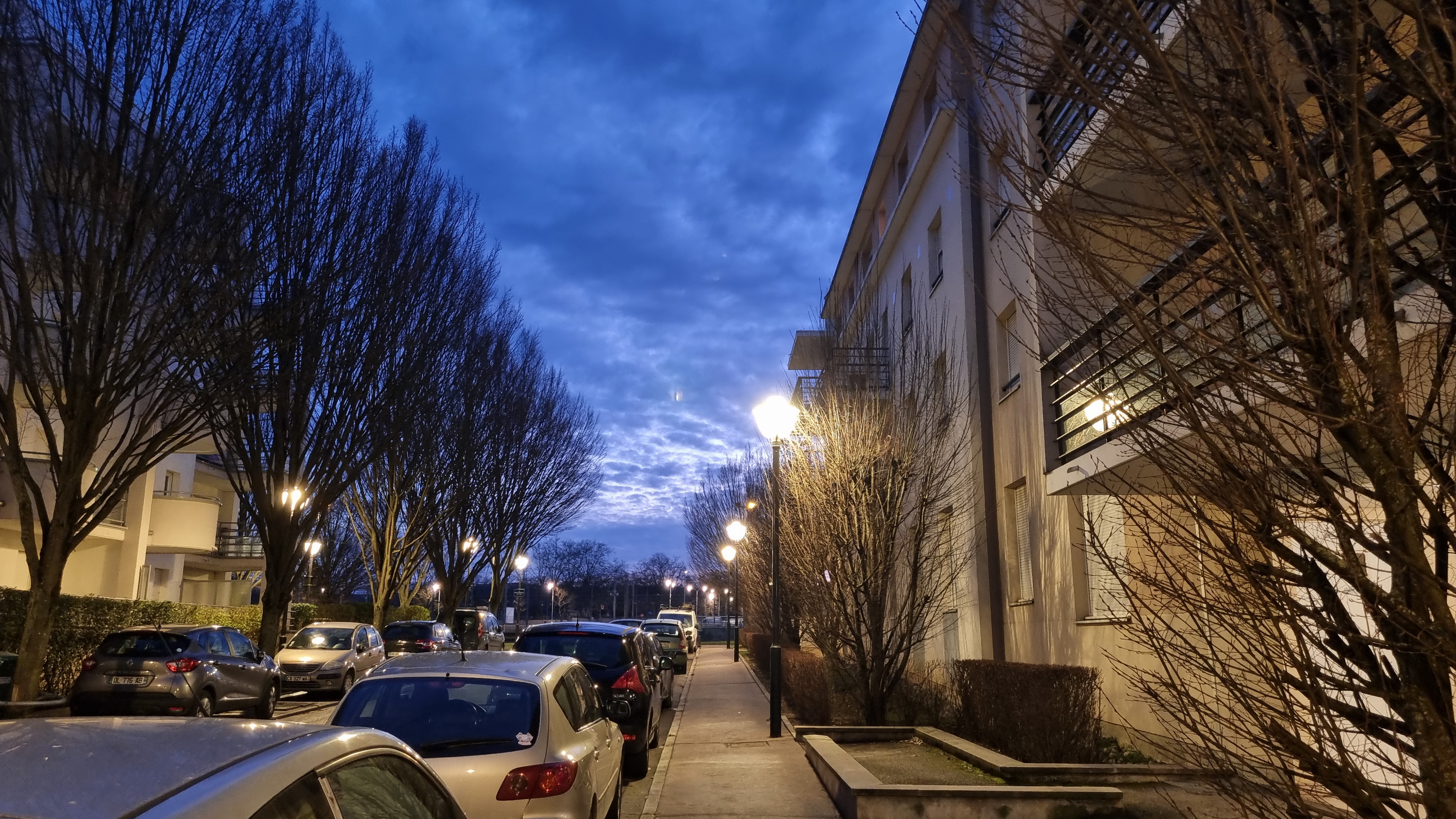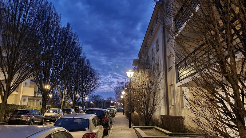 Une photo de nuit, puis sa version corrigée par le mode dédié (“Plus/Nuit”) :