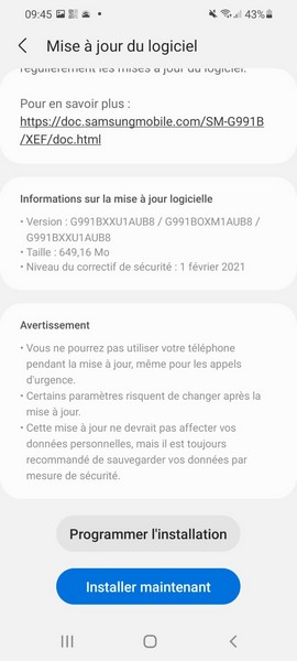 Durant notre test, une mise à jour intermédiaire de 649,16 Mo nous a permis de passer des patchs de janvier 2021 à ceux de février 2021, soit les derniers en date.