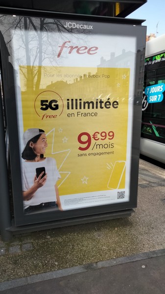 Dans une précédente campagne de publicité sur le mobilier urbain, Free indiquait disposer du plus grand réseau 5G de France en nombre de sites. L’opérateur de Xavier Niel en déploie aujourd’hui une nouvelle pour indiquer la possibilité d’en profiter à moindre coût.