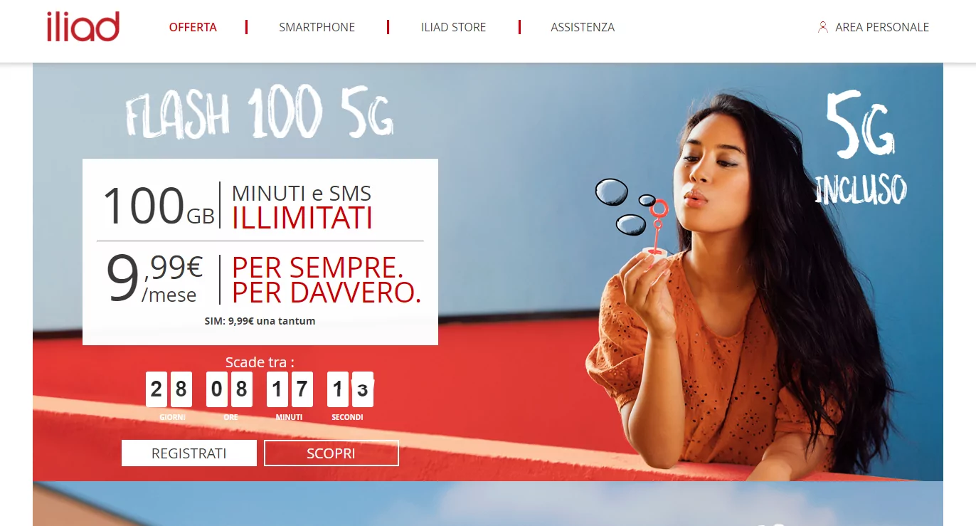 Iliad continue de se montrer très agressif sur les prix de l’autre côté des Alpes. L’opérateur annonce aujourd’hui le lancement d’une “offre sensationnelle”. Il s’agit d’un forfait 5G en série limitée comprenant 100 Go, minutes et SMS illimités, “zéro frais caché et zéro contrainte”, à 9,99€/mois.
