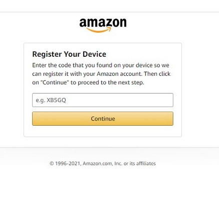 Au démarrage de l’application, l’interface affiche un code court et invite à se rendre sur la page amazon.com/code depuis le navigateur Web du mobile ou de l’ordinateur.