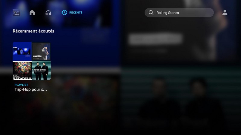 Qui dit playlist suggère la possibilité logiquement d’en créer, afin de profiter des siennes. Nous avons donc cherché comment le faire, en vain. Il nous fallu en créer une depuis le navigateur Web sur PC, avant de le retrouver au sein de l’application Android TV. On a vu plus pratique. Dans l’application Android TV, les playlists se trouve dans “Ma musique”, en cliquant sur l’icône en forme de casque.