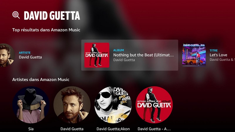 Une recherche sur un artiste donne accès à ses titres et albums, mais également aux playlists avec ses titres.