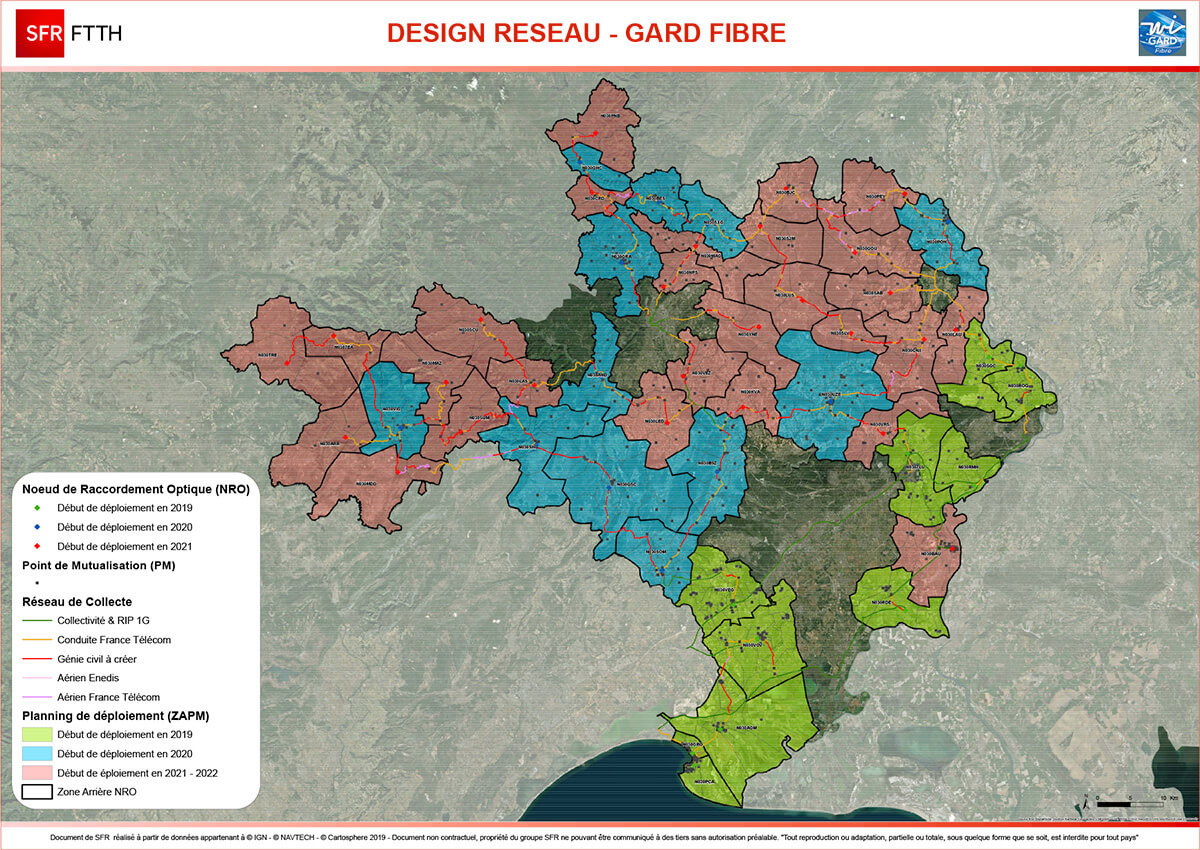 Après avoir signé une convention en septembre 2018 pour la construction et l’exploitation du réseau, SFR FTTH est aujourd’hui à pied d’oeuvre pour atteindre son objectif : couverture fibre à 100% du département d’ici 2022, soit 257 000 prises réparties dans 305 communes. Le projet est d’envergure puisqu’il vise la mise en place de 49 Noeuds de raccordement et 10 000 Kms d’artères fibre optique.