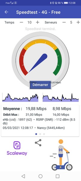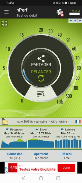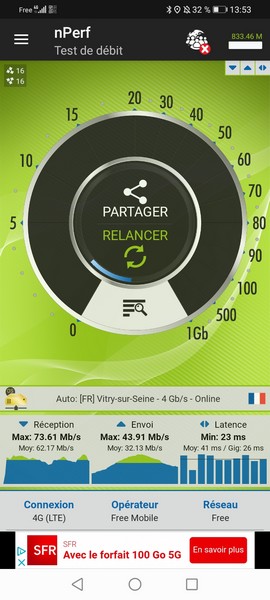 Un nPerf disponible, dont le test de débit fonctionne, mais pas la carte (une version Full Huawei est d’ailleurs sur les rails, nous a indiqué le développeur). Une application Radio France disponible, mais ne fonctionnant pas au final.