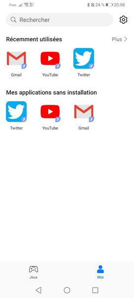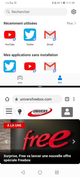 Des applications sans installation à retrouver dans un Quick App Center ou à placer sur l’écran d’accueil, qui ne sont en fait que des raccourcis vers des versions Web pas optimisées (on le voit en basculant en mode paysage).