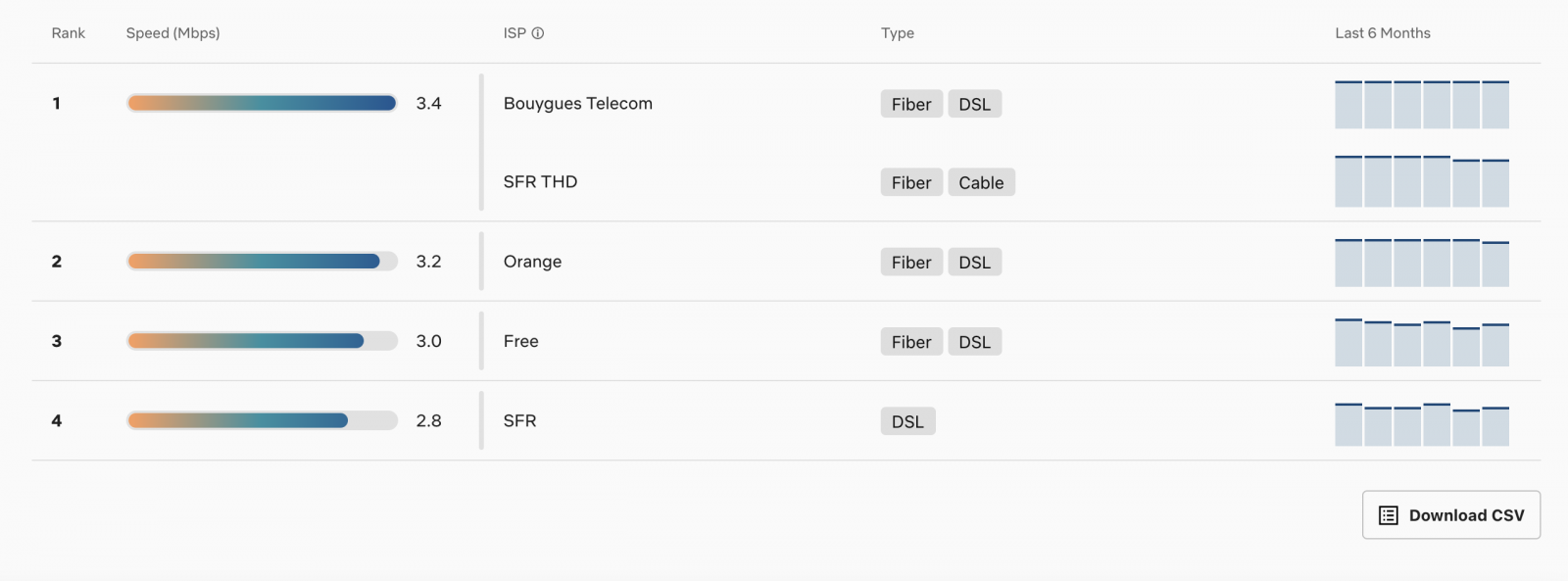 Pour les habitués, après avoir déployé de nouveaux formats d’encodage fournissant un contenu de qualité identique ou supérieure à partir de fichiers de taille réduite (ou débit), Netflix a intégré en janvier 2021 son rapport d’indice de performance. Le classement des FAI a notamment été revu en arrondissant les résultats à 0.2 Mbit/s près, au lieu de 0.01 Mbit/s auparavant.