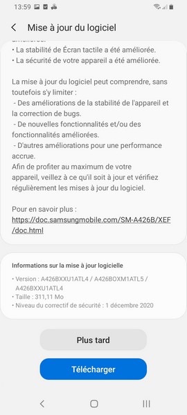 Comme dit plus haut, une mise à jour (de 311 Mo) nous a permis de passer aux patchs de sécurité de décembre 2020 (au lieu d’octobre 2020). Rien de neuf lors de la recherche d’une nouvelle mise à jour, au moment où sont écrites ces lignes.