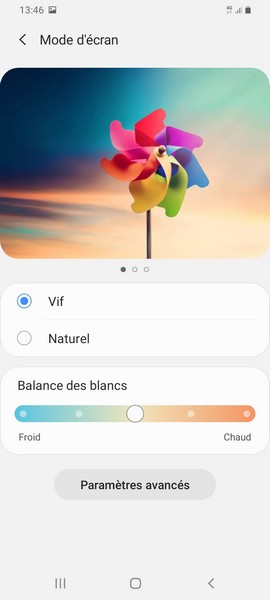 L’écran est AMOLED et propose une diagonale de 6,6 pouces. Il faudra en revanche composer avec l’encoche goutte d’eau, se contenter de la définition HD+ et oublier le taux de rafraîchissement élevé. Il ne coche donc pas toutes les cases. Concernant le manque de définition d’ailleurs, cela dépendra des utilisateurs. Il est passé inaperçu aux yeux de certains, mais a immédiatement sauté aux yeux d’autres. Notez enfin que la chaleur d’affichage peut être ajustée dans les paramètres.