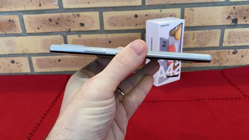 Autant le dire d’emblée, le Galaxy A42 5G ne s’adressera pas aux amateurs de smartphones compacts et légers. Avec son écran de 6,6 pouces et sa batterie 5 000 mAh, il prend de la place entre les mains et se fait difficilement oublier dans la poche (surtout dans celle du short pour un footing ou une balade estivale, par exemple).