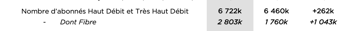 Autre point de satisfaction, Free a réussi à réaliser son objectif 2020 revu à la hausse en septembre dernier, à savoir passer la barre des 2,80 millions d’abonnés fibre à fin décembre. Aujourd’hui, le FAI compte plus de 3 millions d’abonnés, annonce Thomas Reynaud ce matin lors d’une conférence de presse. Dans le même temps, le taux d’adoption progresse de 14,5 points sur 12 mois à 41,7%.