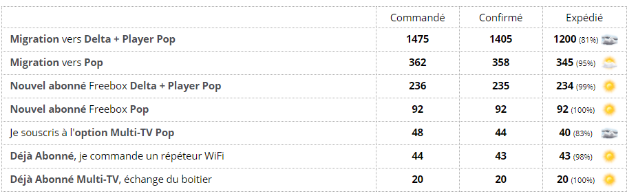 Mais surtout, ce sont les délais de livraisons pour les migration Delta Pop qui diminuent semaine après semaine, alors que les envois étaient presque au point mort le mois dernier. Il faut encore plusieurs mois pour recevoir sa nouvelle box, mais désormais, 81% des demandes ont été satisfaites, soit 2 points de plus en 10 jours, et 20 points en un mois.