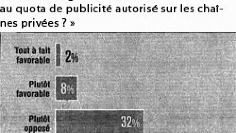 La fin de la publicité sur les chaînes publiques va donc s’accompagner d’une très forte augmentation de la publicité sur les chaînes privées. Et là, les français ne sont plus du tout d’accord comme le révèle un second sondage, toujours réalisé par OpinionWay, et dans lequel il apparait que 89% d’entre eux sont opposés à cette augmentation.