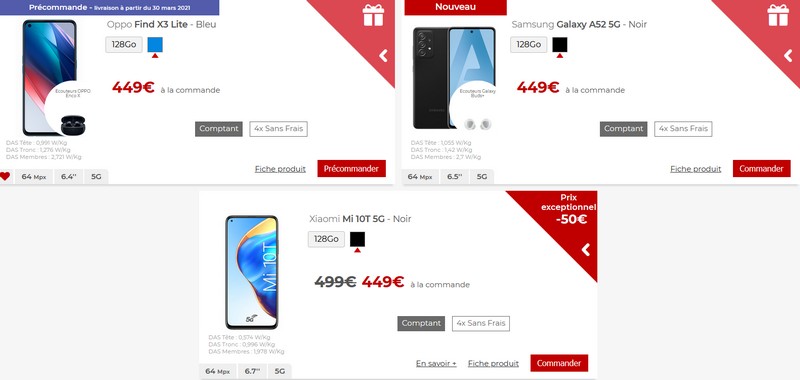 Choc des smartphones dans la boutique Free Mobile : Oppo Find X3 Lite, Samsung Galaxy A52 5G ou Xiaomi Mi 10T ?