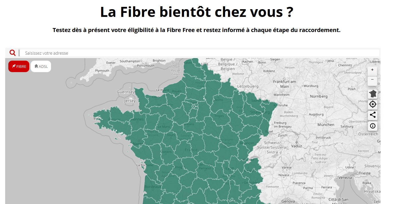 Vous souhaitez tester votre éligibilité à la fibre optique et rester informé à chaque étape du raccordement ? Free met sa carte officielle à jour.