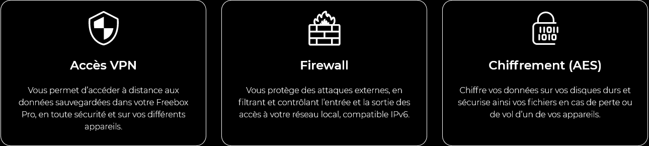 Puisque le télétravail se démocratise, la Freebox Pro inclus également un accès VPN, permettant aux collaborateurs et salariés d’accéder à distance aux données sauvegardées dans leur Freebox partout et sur tous les appareils, avec le même niveau de sécurité que sur leur Freebox.