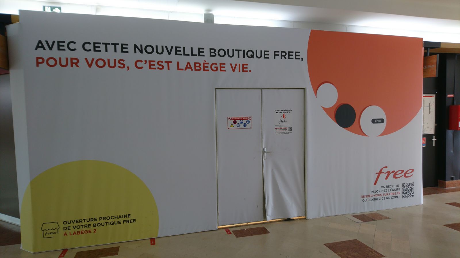 Si Free annonce régulièrement sur Twitter l’ouverture de nouvelles boutiques, certains lecteurs d’Univers Freebox les découvre avant. C’est le cas d’un nouveau Free Center qui est en cours de travaux au sud-est de Toulouse, dans le centre commercial Labège 2.
